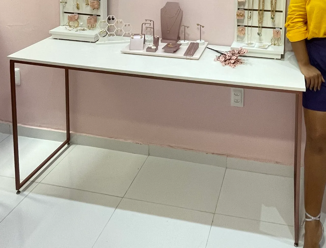 Duas mesas no estilo industrial, uma está com o pé quebrado e precisa soldar. Medidas de cada: 1,56 por 0,56 O valor do anúncio é pelas duas