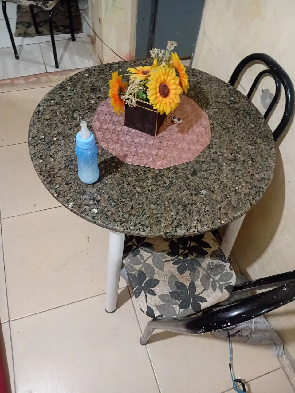 Linda mesa redonda de granito, ideal para sua cozinha ou sala de jantar. Design elegante e durável, perfeita para refeições e momentos especiais.