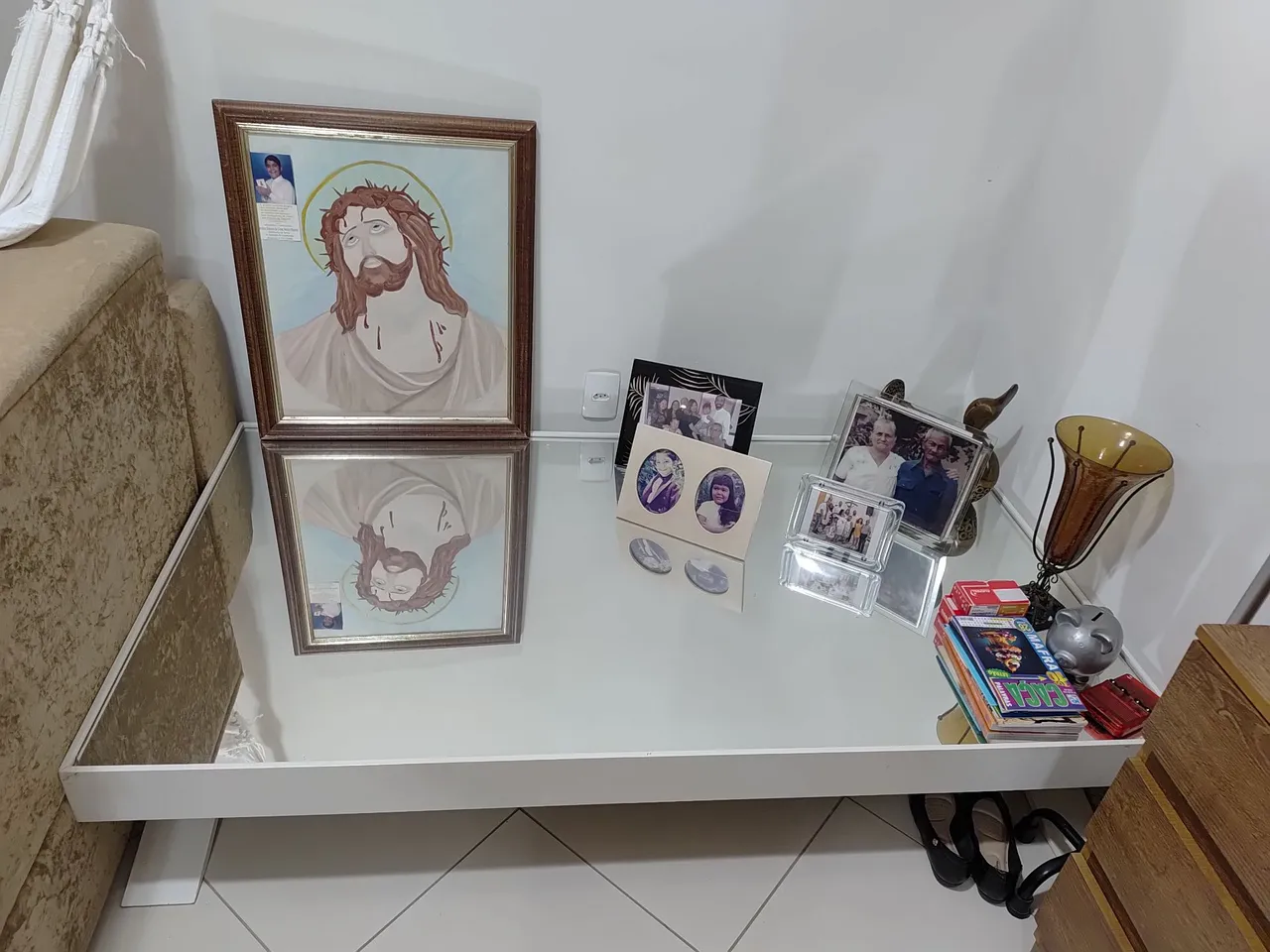 Linda mesa para sua sala, com design moderno e elegante. Perfeita para decorar e trazer um toque de sofisticação ao seu ambiente. Mesa c espelho . Falar c Marcia 799... ver número. Valor 900,00
