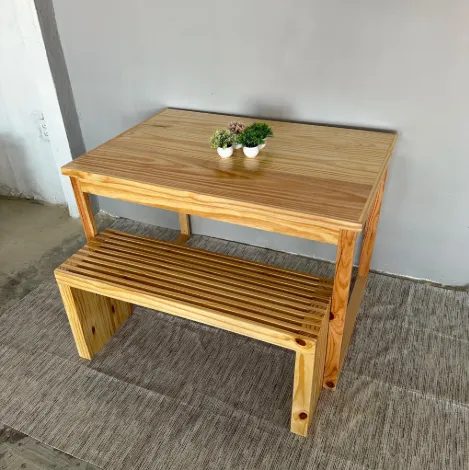 Conjunto de mesa e banco em madeira, ideal para sua casa ou escritório. Design moderno e elegante, perfeito para diversos ambientes.