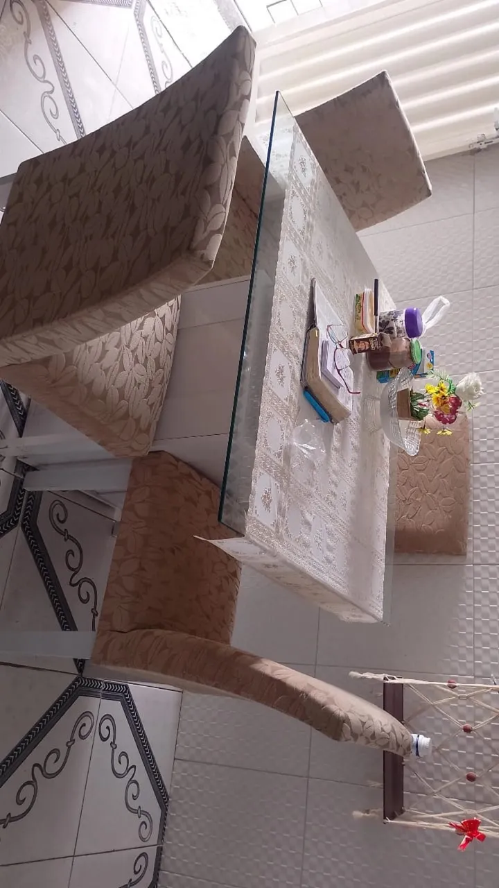 Conjunto de mesa elegante com quatro cadeiras, perfeito para sua sala de jantar ou cozinha. Design moderno e confortável, ideal para reunir a família e amigos.
