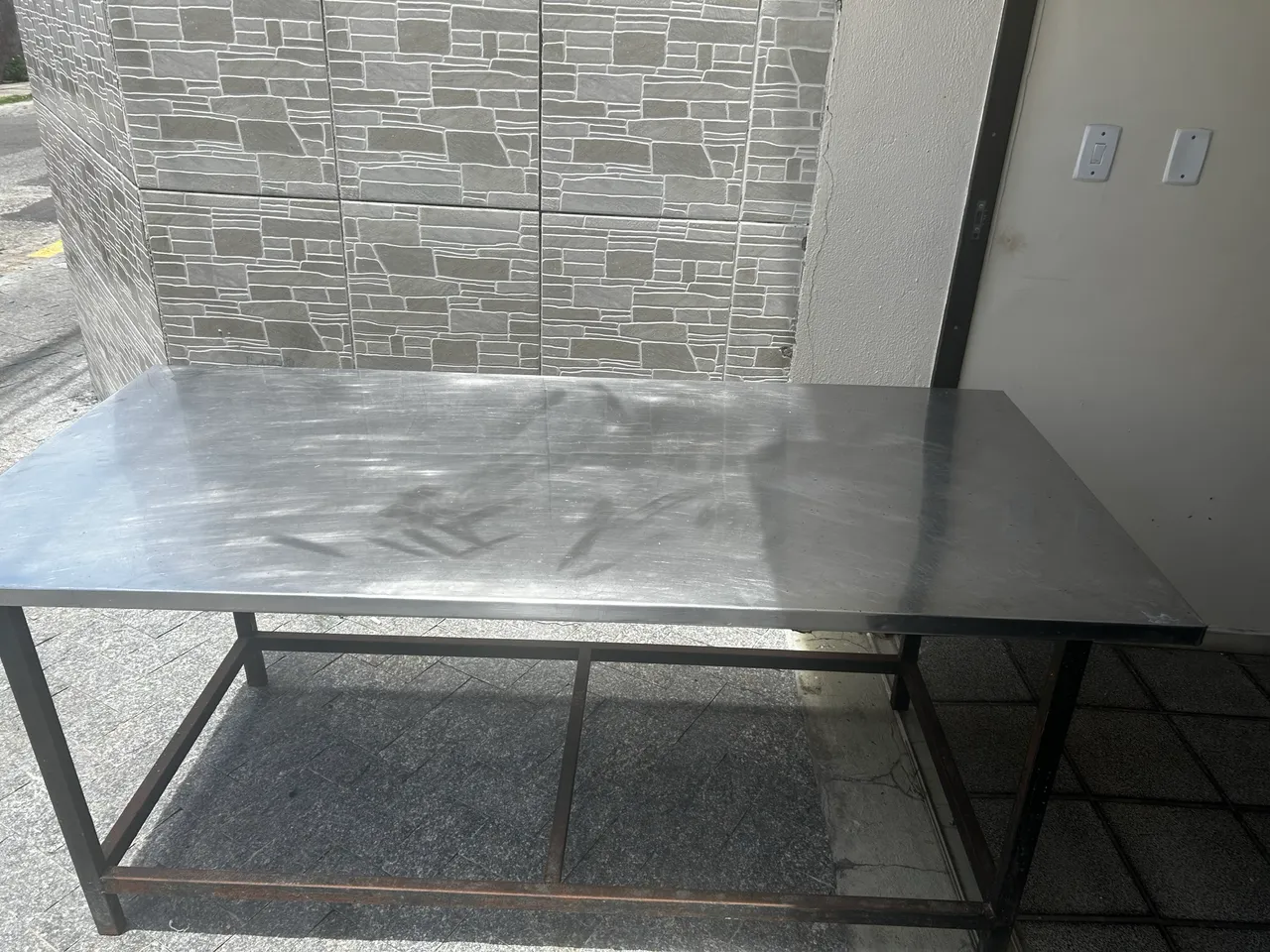 Linda mesa com tampo de inox, perfeita para sua cozinha ou área de serviço. Design moderno e resistente, ideal para diversas atividades. Adquira já a sua!