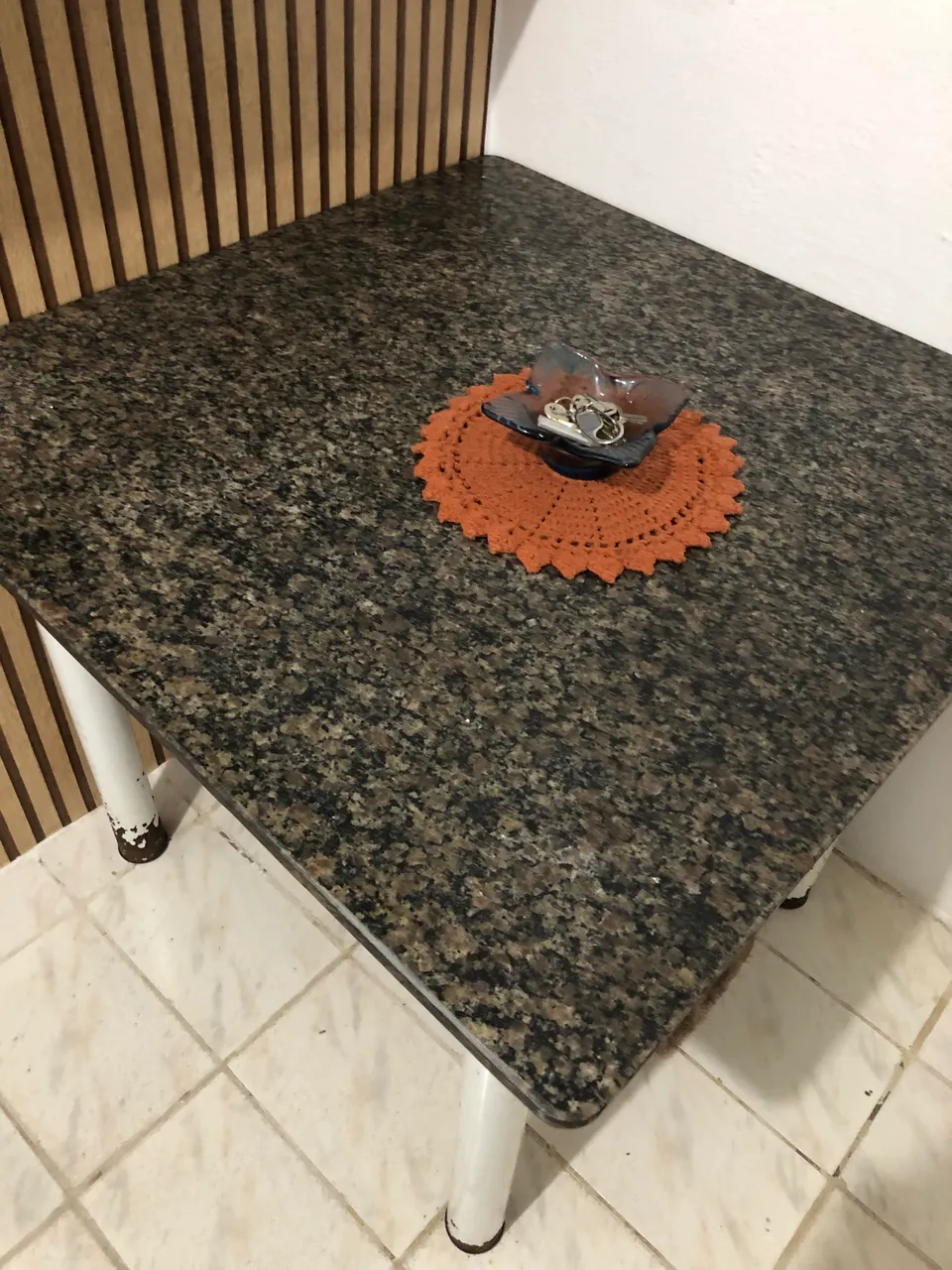 Linda mesa de mármore, perfeita para diversos ambientes!. Ideal para sala de jantar, cozinha ou área de lazer. Com avaria porém fácil de resolver!