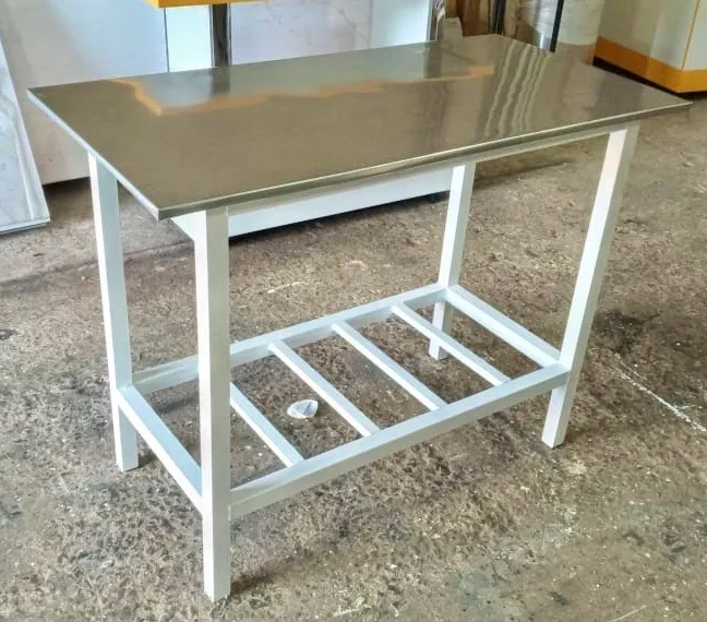 Mesa com design moderno e elegante, perfeita para diversos ambientes. Tampo em aço inox de alta qualidade e estrutura resistente. Ideal para quem busca durabilidade e sofisticação. ORÇAMENTOS VIA WHATSAPP