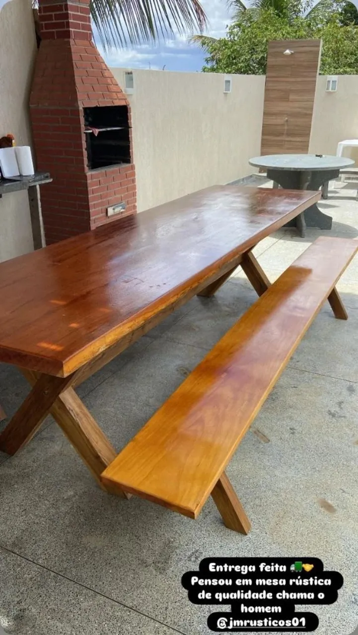 Linda mesa de angelim, perfeita para sua casa! Design rústico e elegante para você desfrutar de momentos especiais com amigos e familiares.