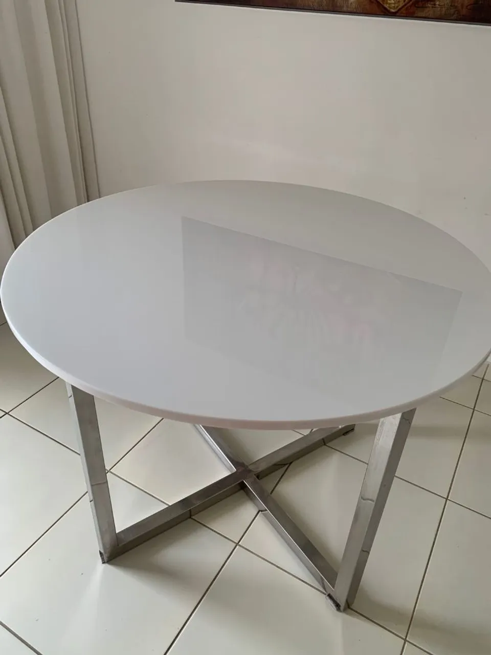 Linda mesa redonda de 1m² em SuperNanoglass, design moderno e elegante para sua casa. Perfeita para diversos ambientes, combinando beleza e funcionalidade.