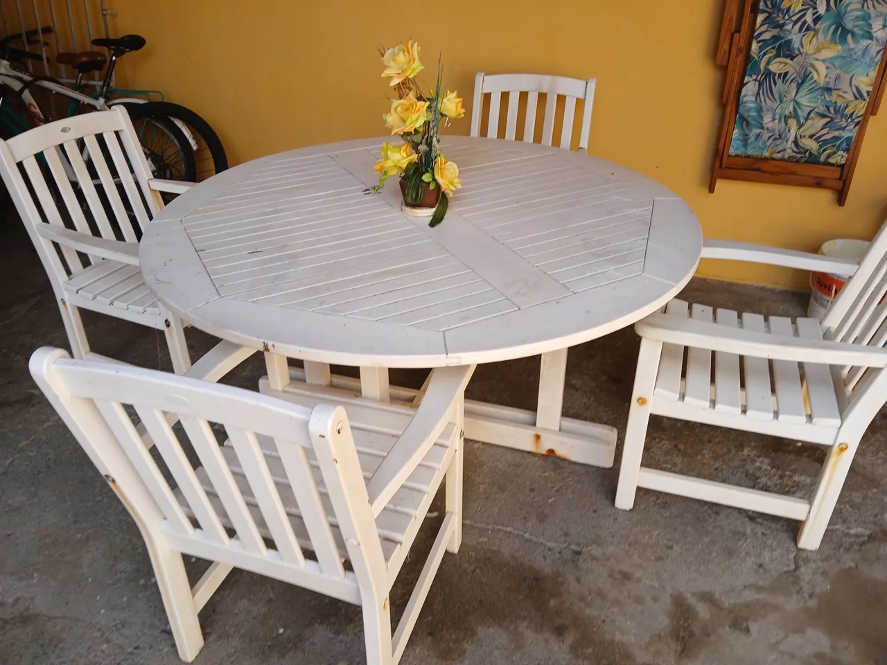 Linda mesa redonda de madeira, perfeita para reunir a família e amigos. Seu design elegante e atemporal combina com qualquer ambiente, ideal para criar momentos especiais. 1.50 MT de largura