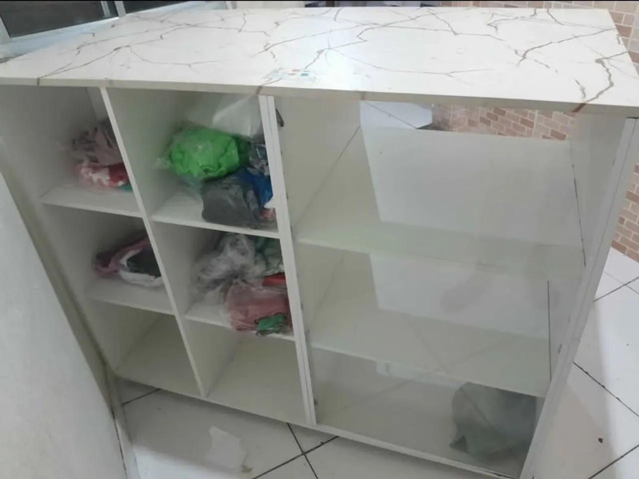 Balcão moderno e espaçoso para organizar seus pertences com elegância. Ideal para otimizar o espaço e adicionar um toque de sofisticação ao ambiente.