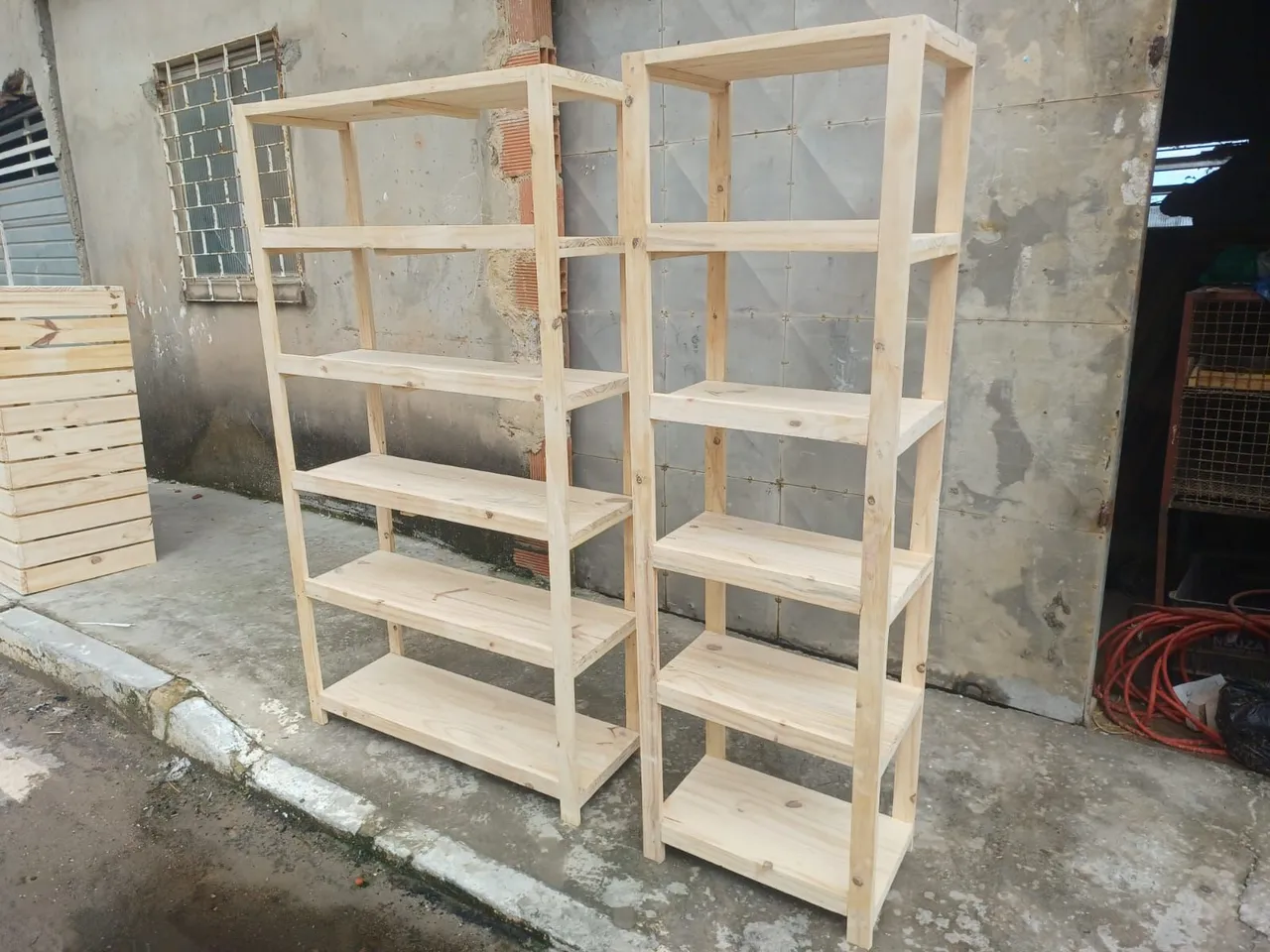 Estantes de madeira de pallet, perfeitas para organizar seus ambientes com elegância e praticidade. Design funcional e resistente, ideal para otimizar espaços e exibir seus objetos.