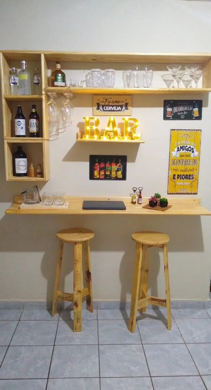 Crie um espaço de convívio perfeito com este cantinho do bar! Ideal para receber amigos e familiares, este conjunto de mesa e banquetas oferece um ambiente charmoso e acolhedor para momentos de descontração e celebração.