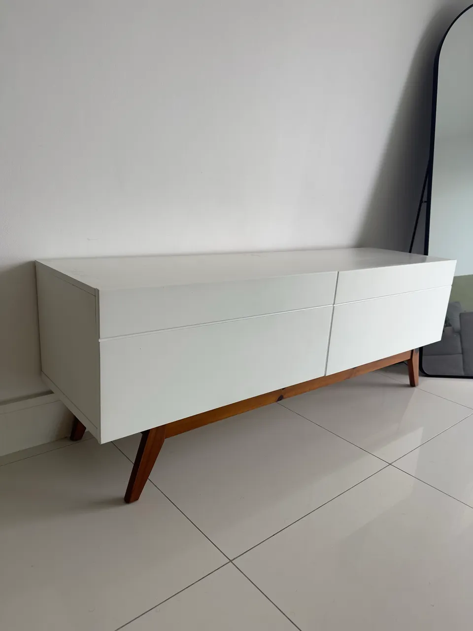 Apresentamos o rack branco perfeito para sua sala de estar! Design moderno e elegante que combina com qualquer ambiente. Ideal para TV e outros eletrônicos, oferecendo organização e estilo.