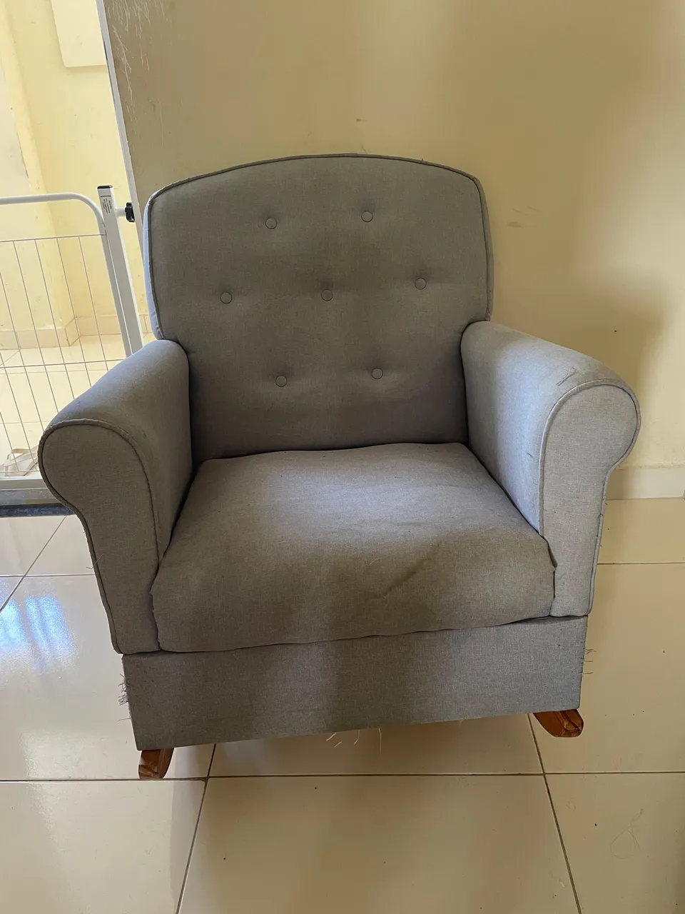 Poltrona de amamentação Tecido de linho Só precisa fazer uma lavagem a seco Com marcas de uso