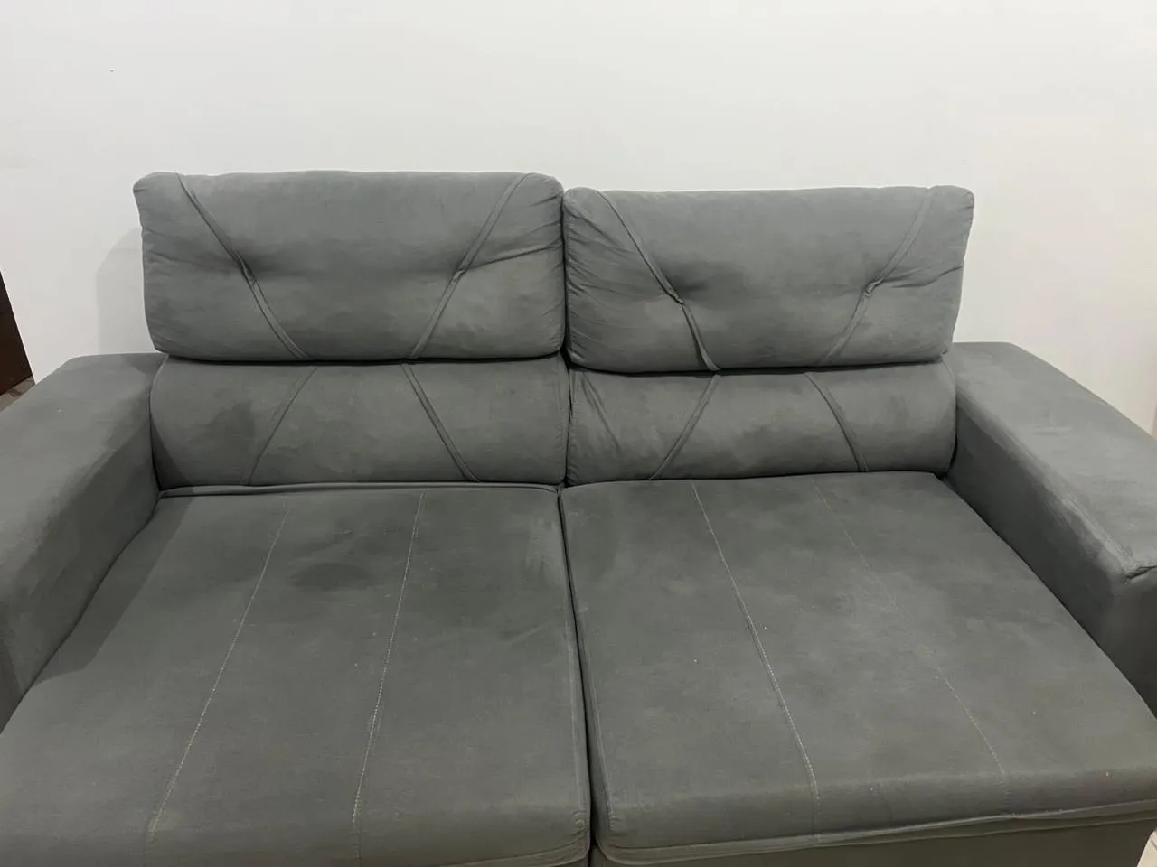 Sofá medindo 2,10 de largura, três lugares.