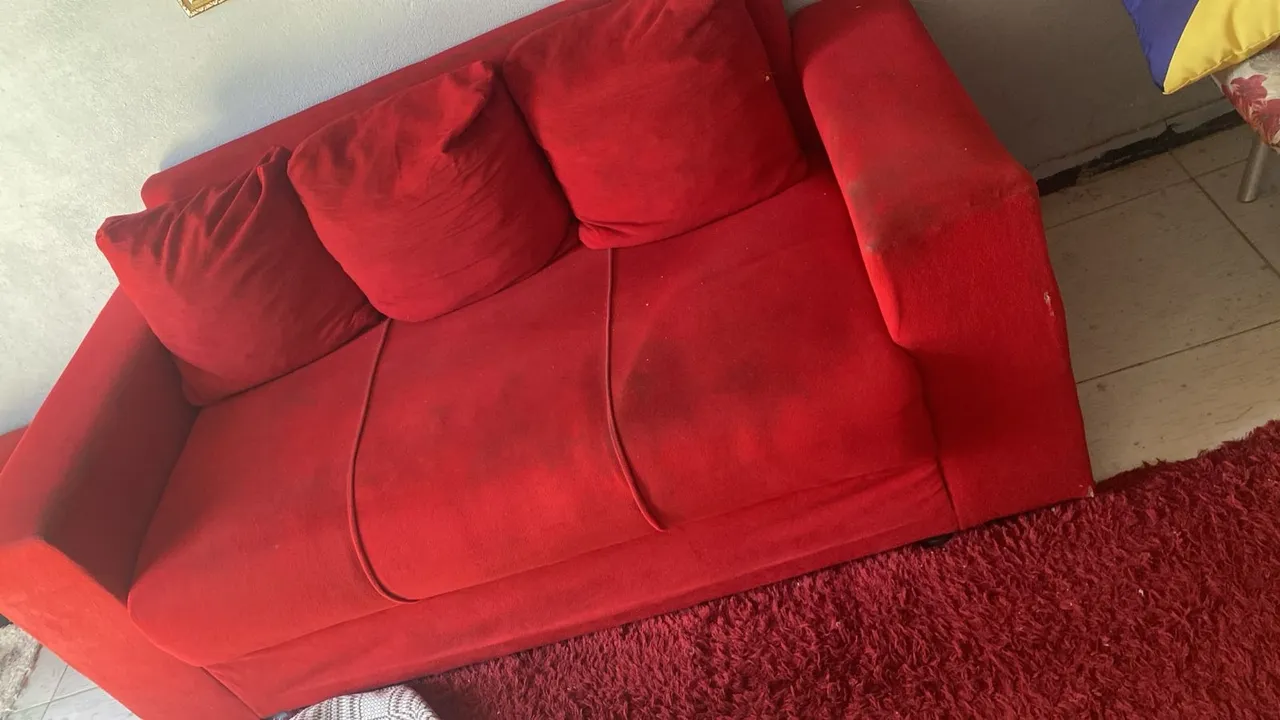 Sofá vermelho de 3 lugares, ideal para sua sala. Em ótimo estado bem acochoado.