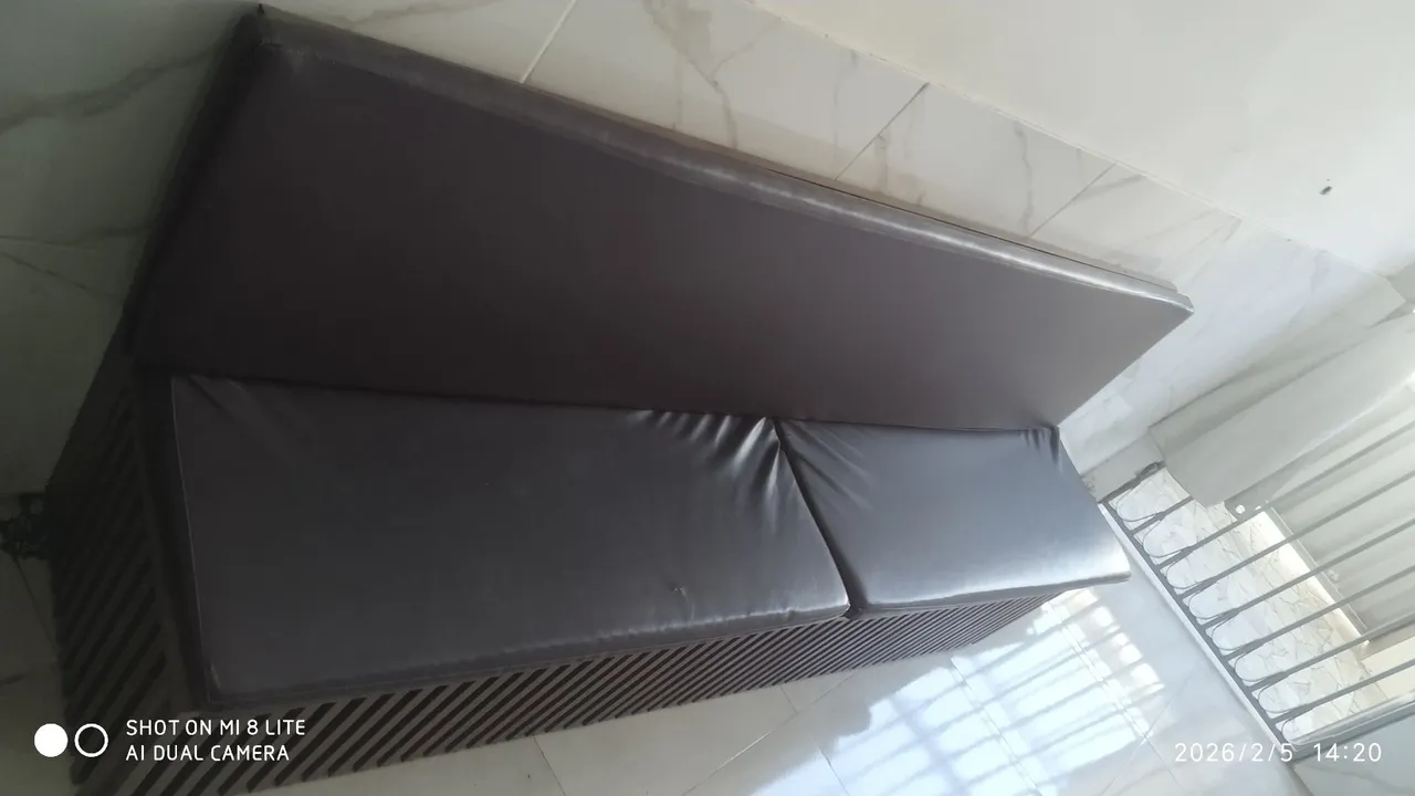 Sofá baú de madeira com 2 mt, ideal para otimizar o espaço e adicionar um toque de elegância ao seu ambiente. Perfeito para guardar objetos e decorar sua casa.