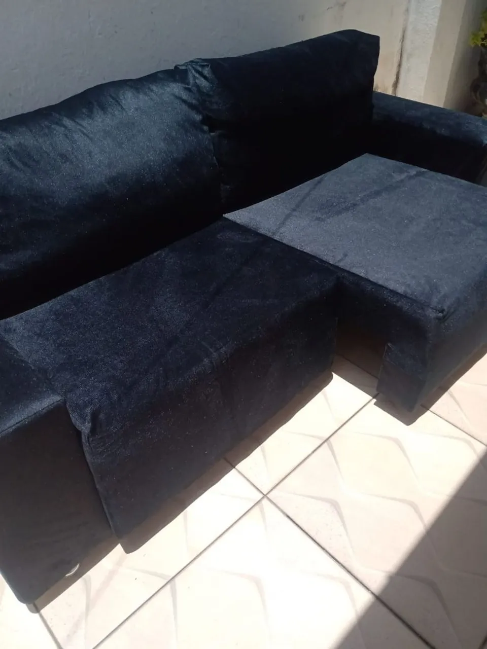 Apresentamos este sofá , retrátil novo ,elegante e confortável, medindo 2,15 m .Aceito cartão de crédito, frete 30,00 Tel.
