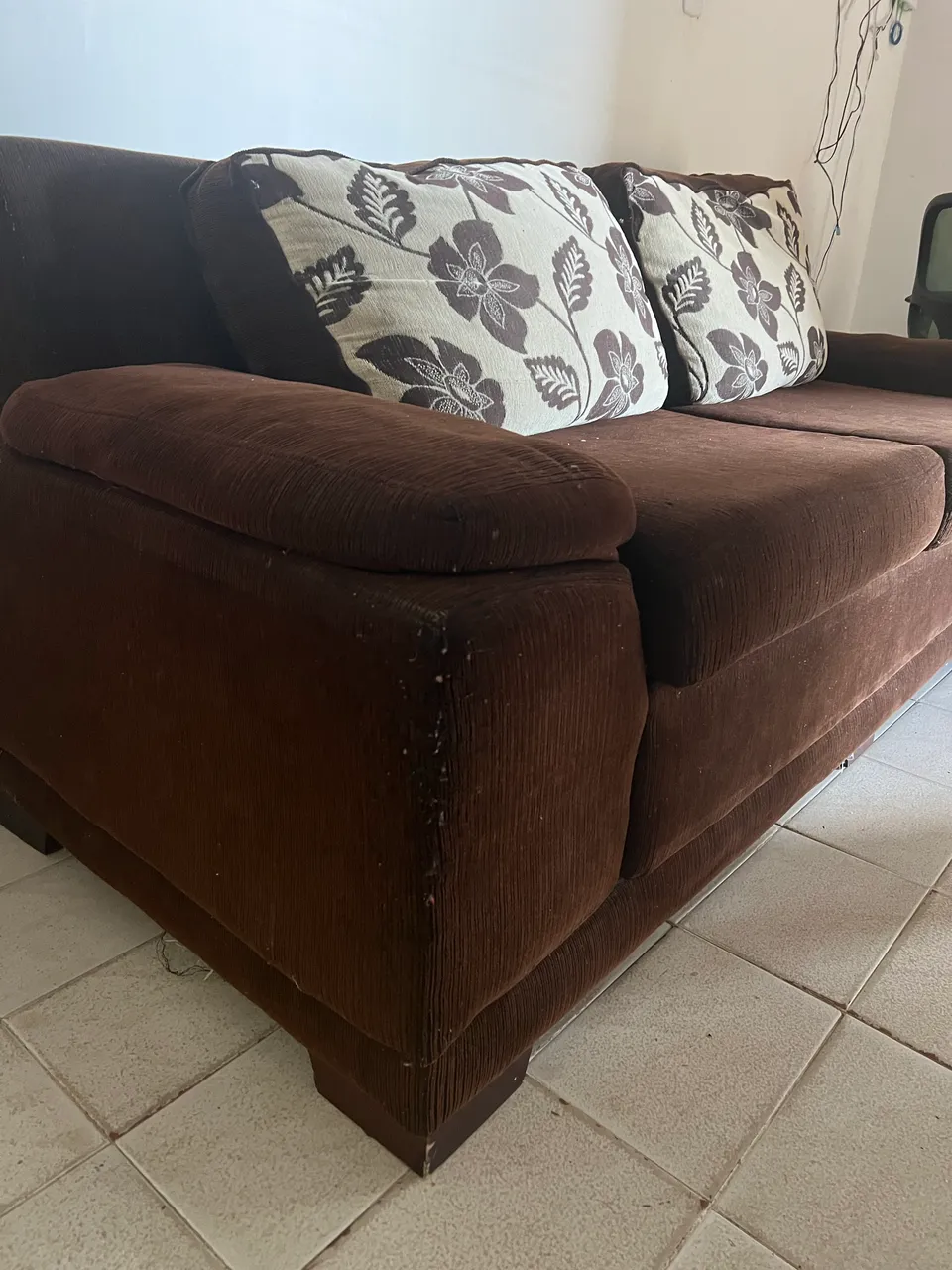 Estou vendendo um sofá de 2 lugares e um sofá de 3 lugares, ambos na cor marrom, confortáveis e com estrutura firme.