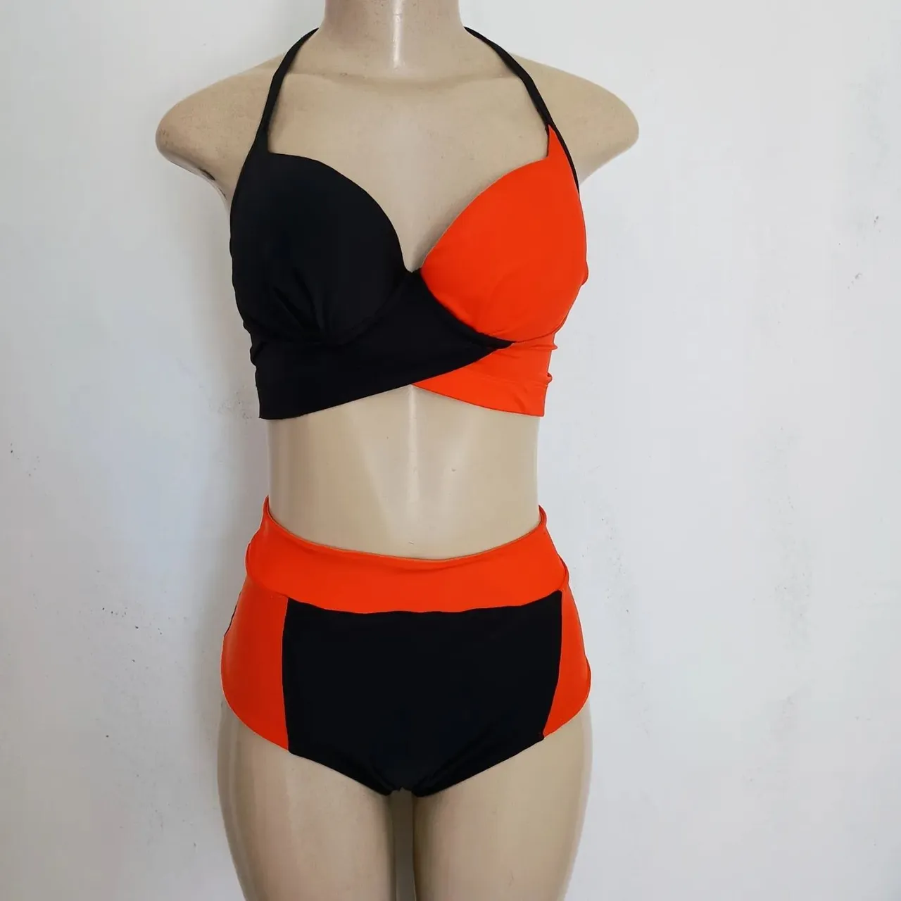Biquíni lindo e novo, na cor preta e laranja, para você arrasar no verão! Com bojo e calcinha de cintura alta.