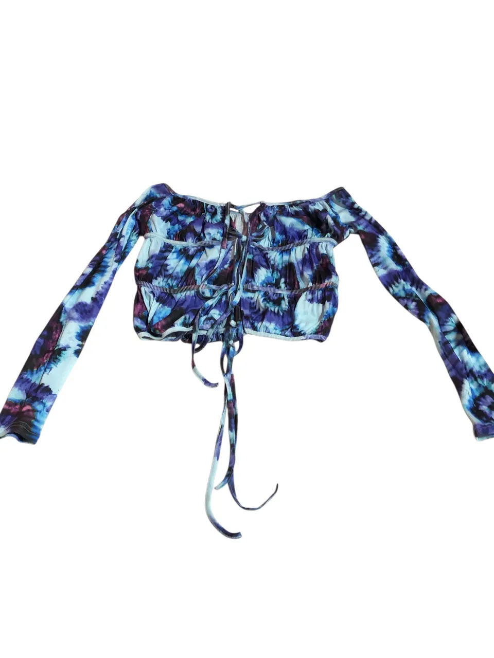 Blusa charmosa com mangas compridas e design tie dye vibrante. Perfeita para um look moderno e estiloso.