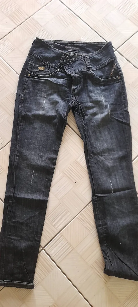 Calça jeans feminina preta, com detalhes estilosos e design moderno. Perfeita para diversas ocasiões, combine com seus looks preferidos e arrase!