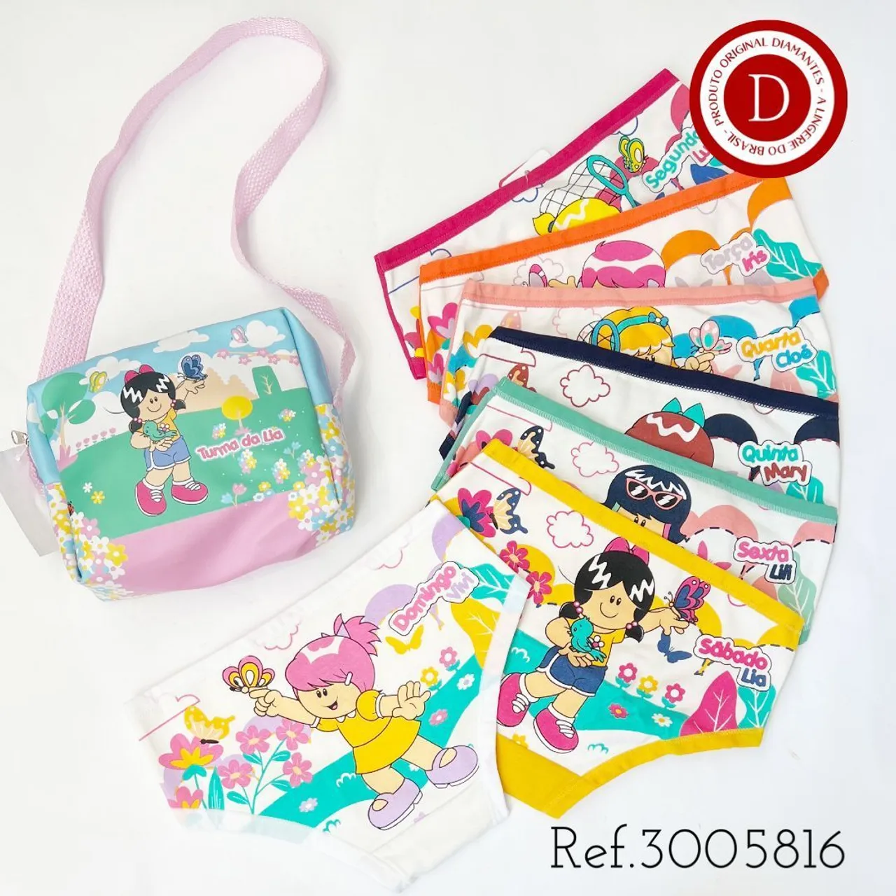 Conjunto de calcinhas infantis da Turma da Lia, com estampas divertidas de cada dia da semana. Ideal para meninas que amam a Turma da Lia! Novas, sem uso.