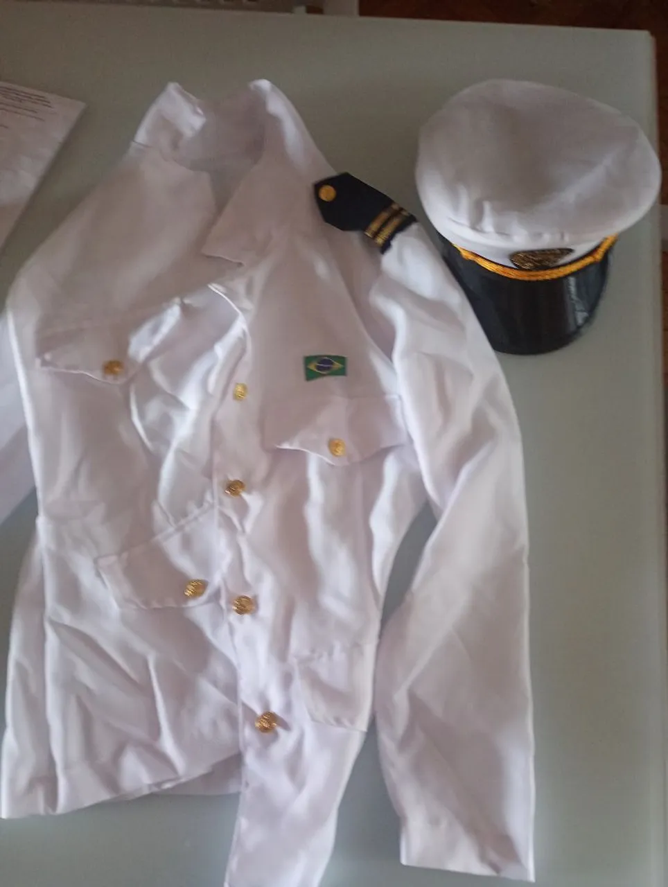 Lindo conjunto de marinheiro para você arrasar! Perfeito para festas temáticas ou eventos especiais. Composto por chapéu, camisa e saia, este conjunto branco é elegante e estiloso. Vista-se com charme e aproveite!