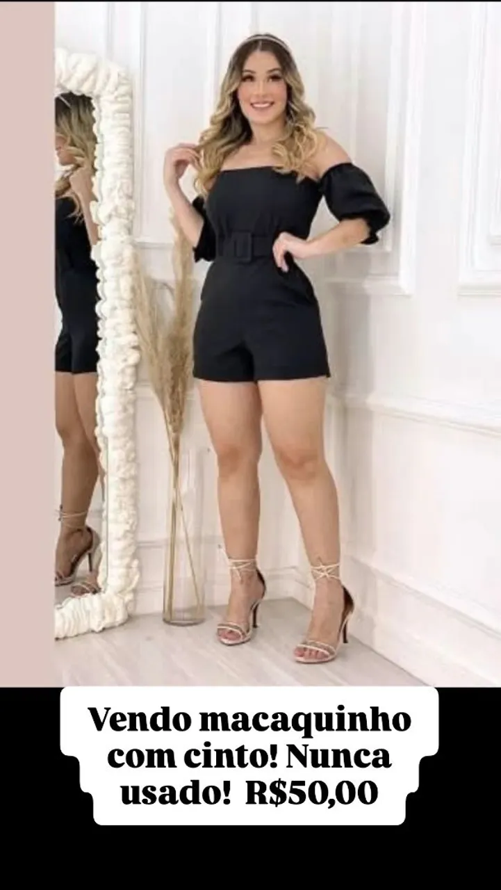 Nunca usado. Lindo macaquinho preto com cinto, perfeito para diversas ocasiões. Modelo ombro a ombro que valoriza o seu look!