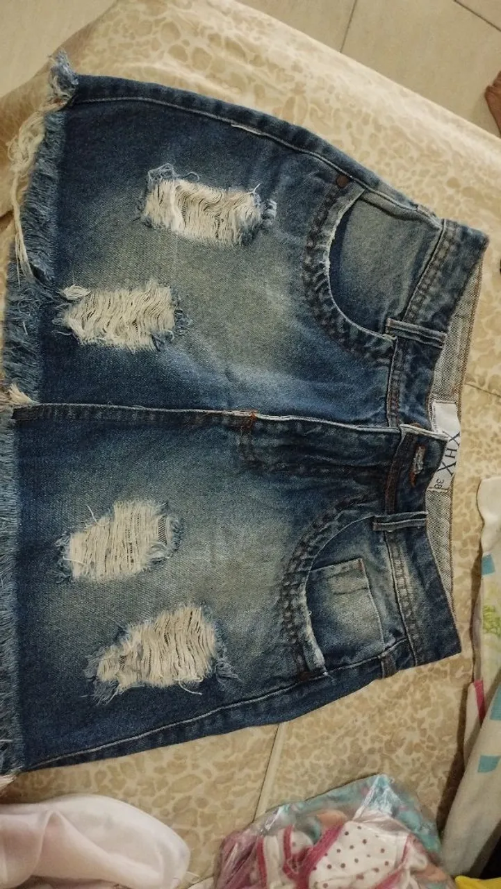 Saia jeans bem conservada com detalhes destroyed, perfeito para um look moderno e despojado.