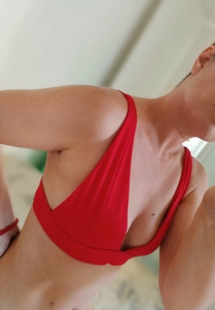Top de biquíni vermelho vibrante, perfeito para um visual de praia moderno e atraente. Design elegante e confortável para você aproveitar o sol com estilo.