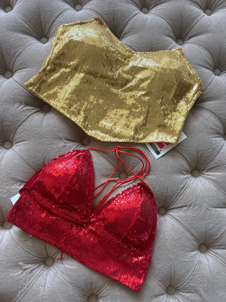 Arrase nas festas com este top de brilho e paetê! Perfeito para o Pré Caju, este top vibrante te fará brilhar por onde passar. Combine com saias, calças ou shorts e crie looks incríveis!