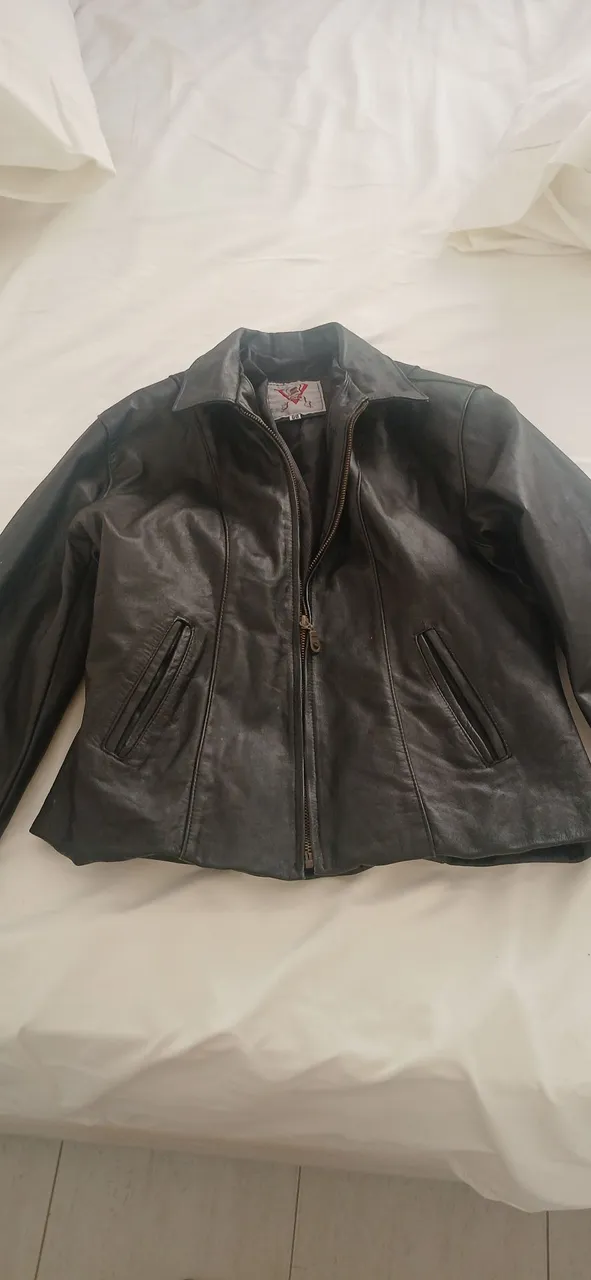 Jaqueta de couro original, perfeita para um visual moderno e elegante. Design clássico e atemporal, ideal para diversas ocasiões.