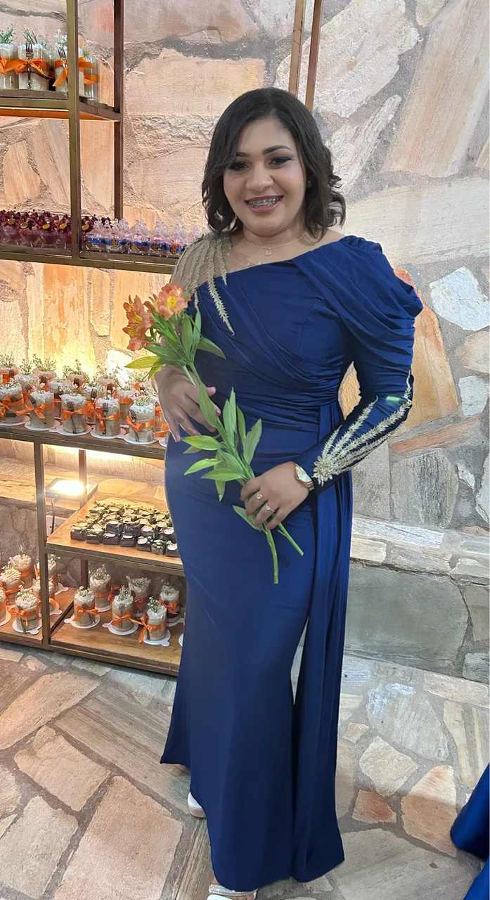 Deslumbre com este elegante vestido de madrinha! Perfeito para ocasiões especiais, este vestido combina sofisticação e conforto. Seu design impecável e caimento perfeito garantem um visual inesquecível. Usado só uma vez e temos conversa