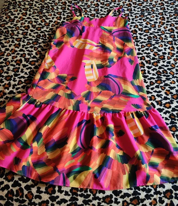 Vestido com estampa colorida, ideal para o dia a dia ou ocasiões especiais. Possui alças finas e babado na barra, dando um toque de charme e delicadeza à peça.