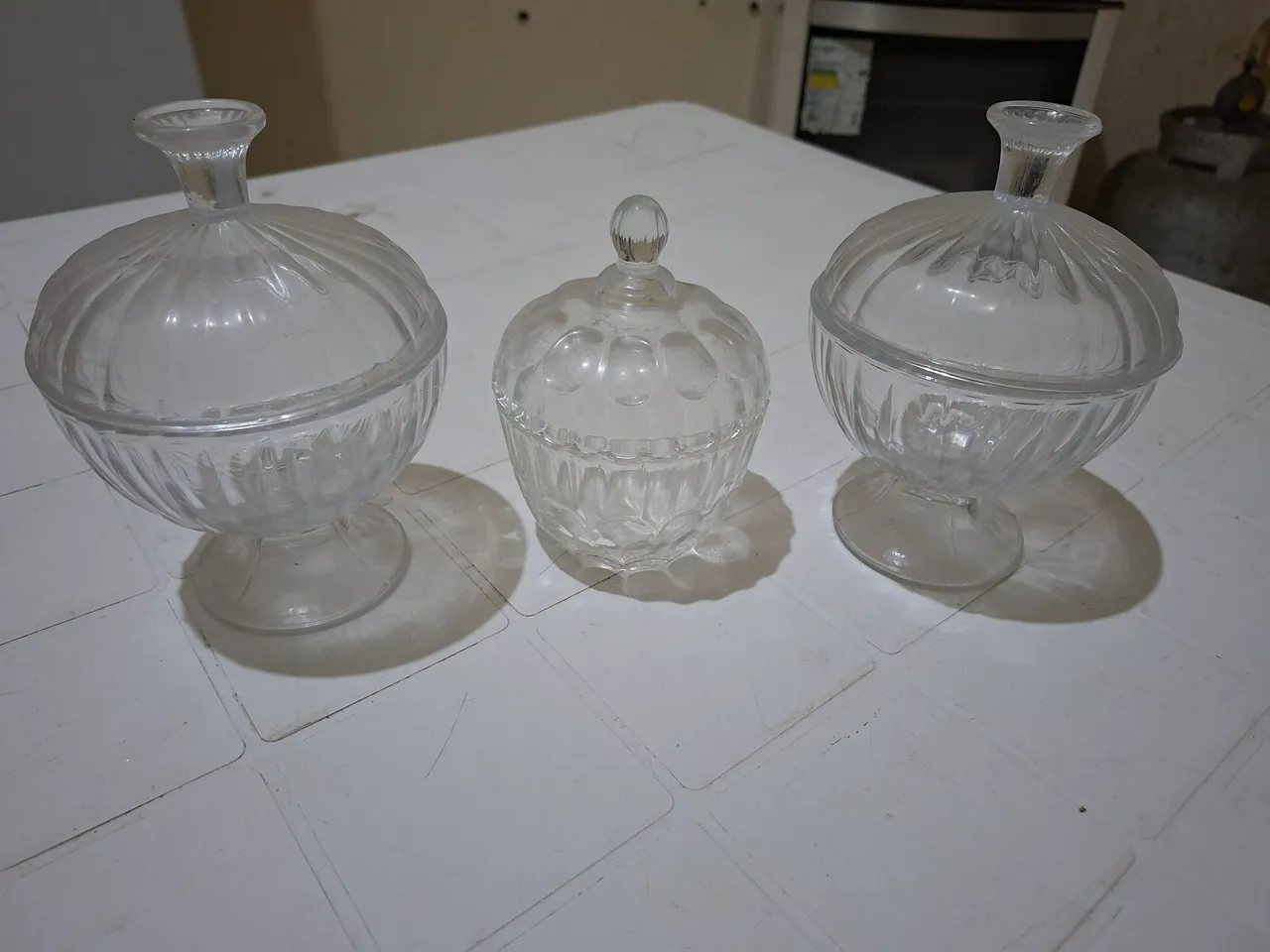 O quites são novos, são para arrumar mesa, para colocar balas, doces e chocolates. Só estou vendedo porque minha mãe faleceu e eu não uso. Não entrego. O valor do quite é 80,00