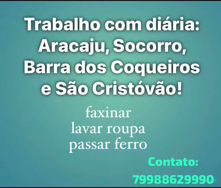 Faço faxina, lavo roupa, passo ferro! Somente diária!