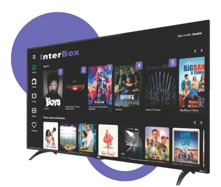 Desfrute de uma nova era de entretenimento com o InterBox! Mergulhe em seus filmes e séries favoritos com alta qualidade de imagem e som, tudo em um só lugar.