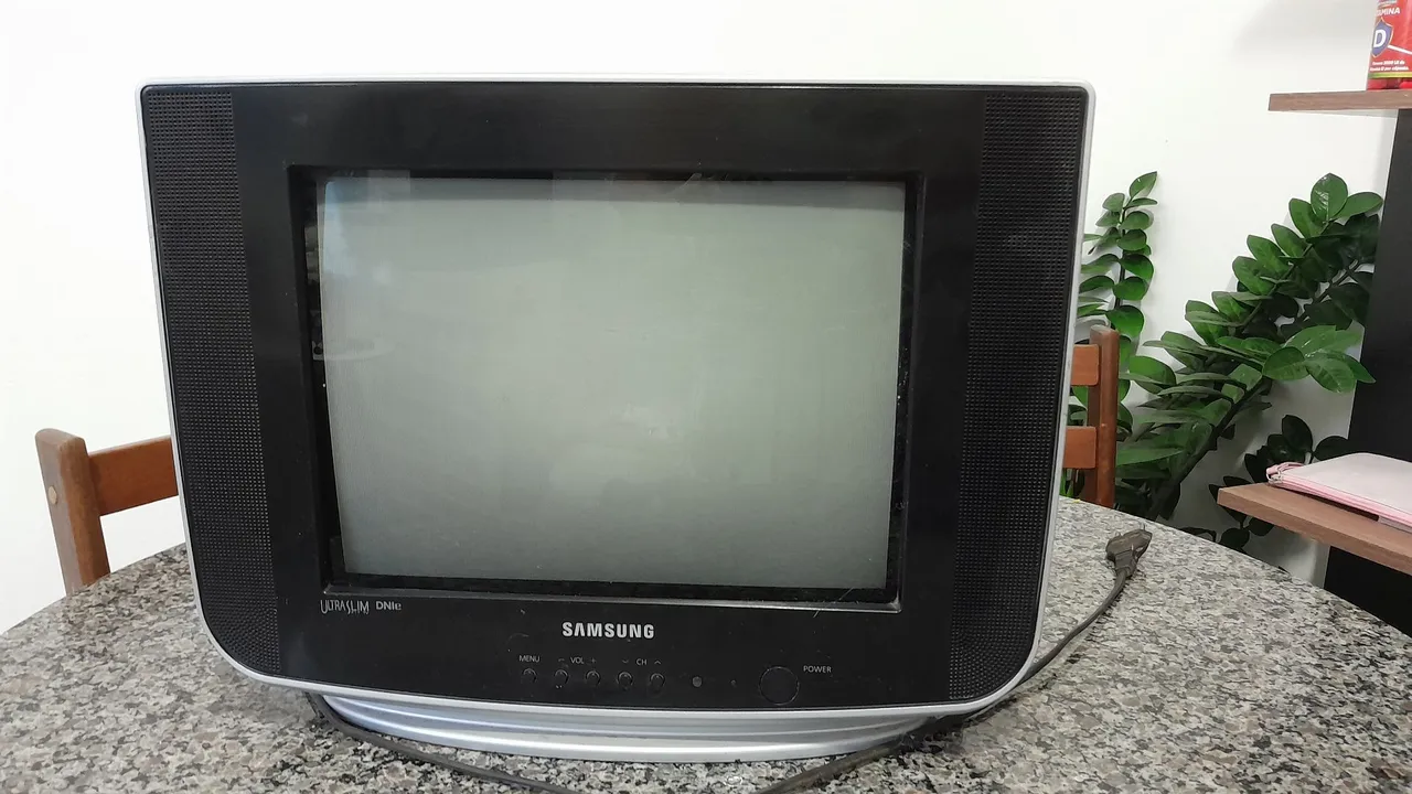 TV 14 polegadas Samsung funcionando perfeitamente, ideal para quem busca qualidade e praticidade em um só aparelho. Perfeita para qualquer ambiente!