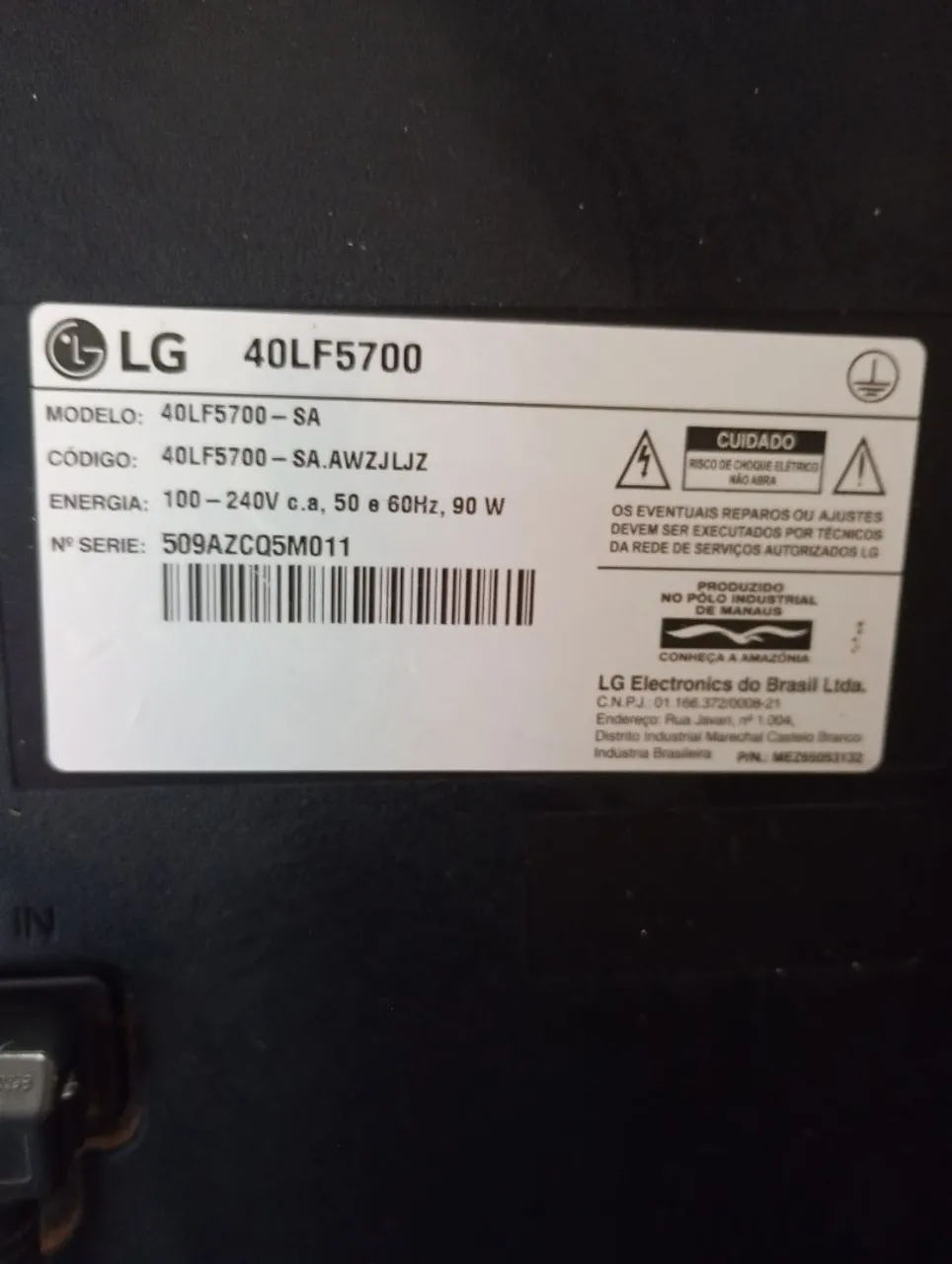 Tv LG com defeito