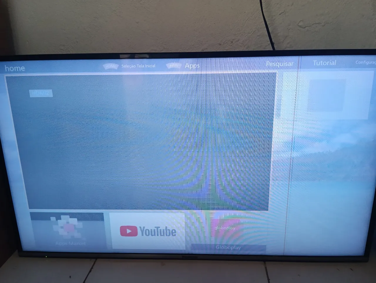 TV LCD com tela de 40 polegadas com defeito na tela (tela clareada).