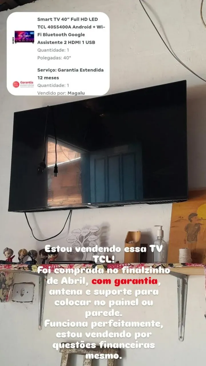 Smart TV TCL 40" Full HD LED com Android e Wi-Fi, perfeita para uma experiência de entretenimento imersiva. Possui assistente Google, 2 entradas HDMI e 1 USB. Imagem de alta qualidade e design moderno.