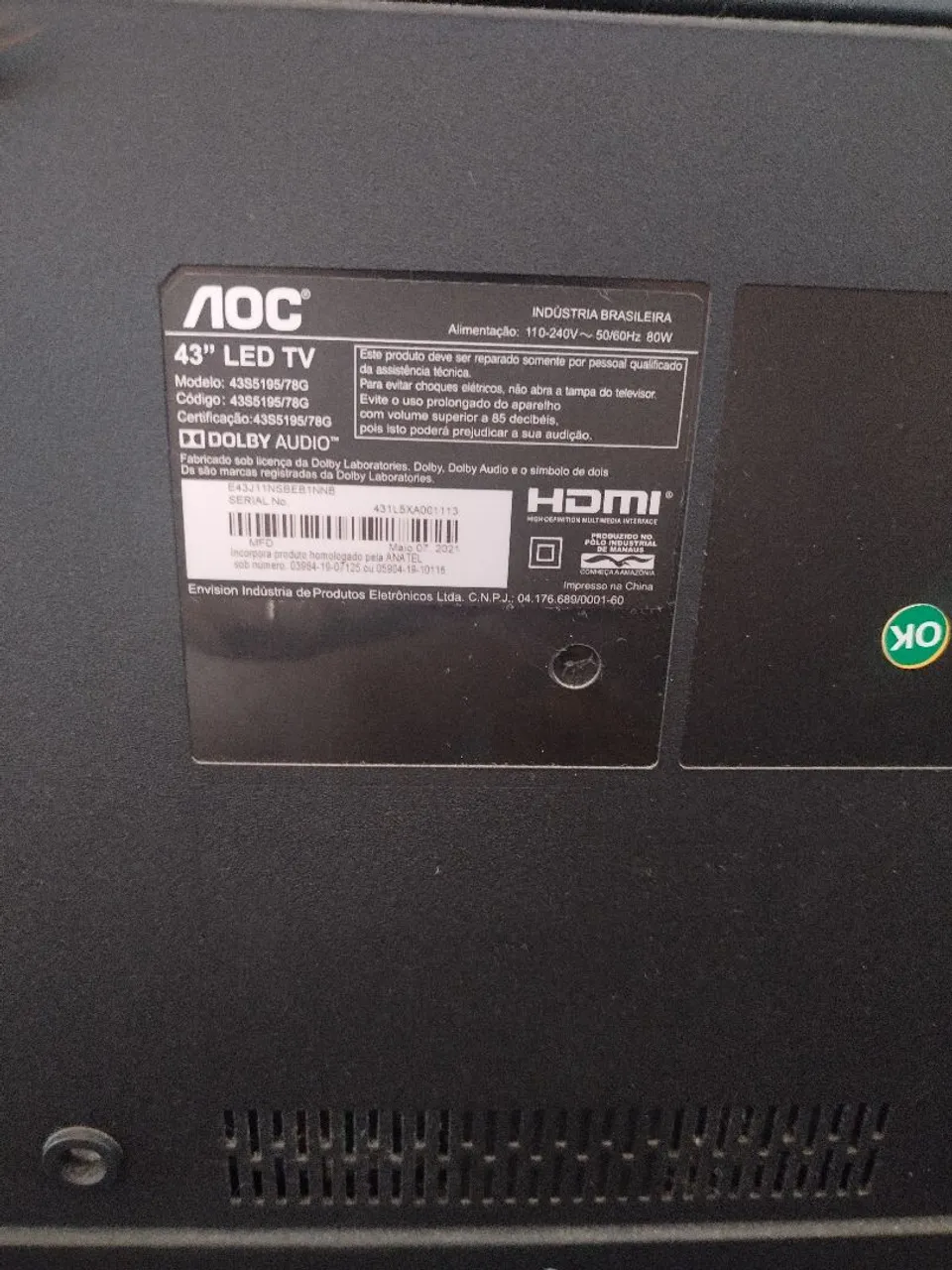 Aproveite a experiência de assistir seus programas favoritos em alta definição com esta TV AOC de 43 polegadas. Imagens vibrantes e som de qualidade garantem entretenimento para toda a família!